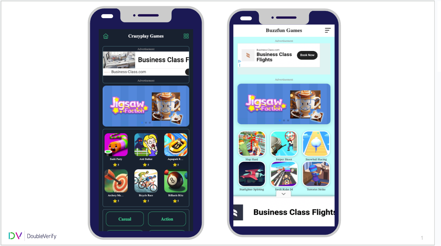 The cashout webpages themselves are the most innocent-seeming link in the chain. Sold to advertisers as inventory, they appear to be free of malicious code. To a random visitor or an auditor, they look like harmless, high-traffic gaming websites. However, they get very little organic traffic. The majority of impressions originating from them come from hidden iOS WebViews.