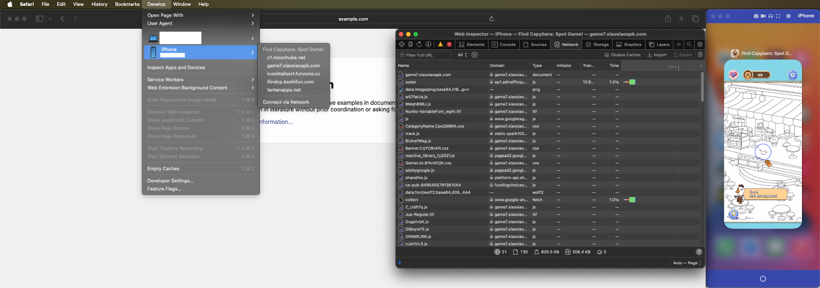 To load the cashout websites without giving the user any visual indication, UniSkyWalking uses native methods of hiding and stacking WebViews. This behavior can be observed by running those WebViews in debug mode using Safari Web Inspector: