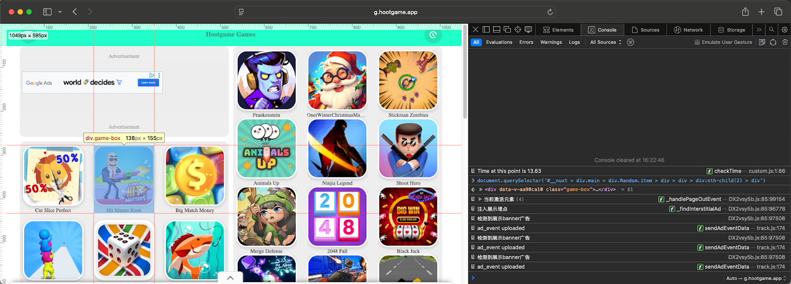 The cashout site below (shown in a PC browser) looks like a typical HTML5 gaming website. But running the CSS query selector from the C2 server reveals that it points to an ad trigger.