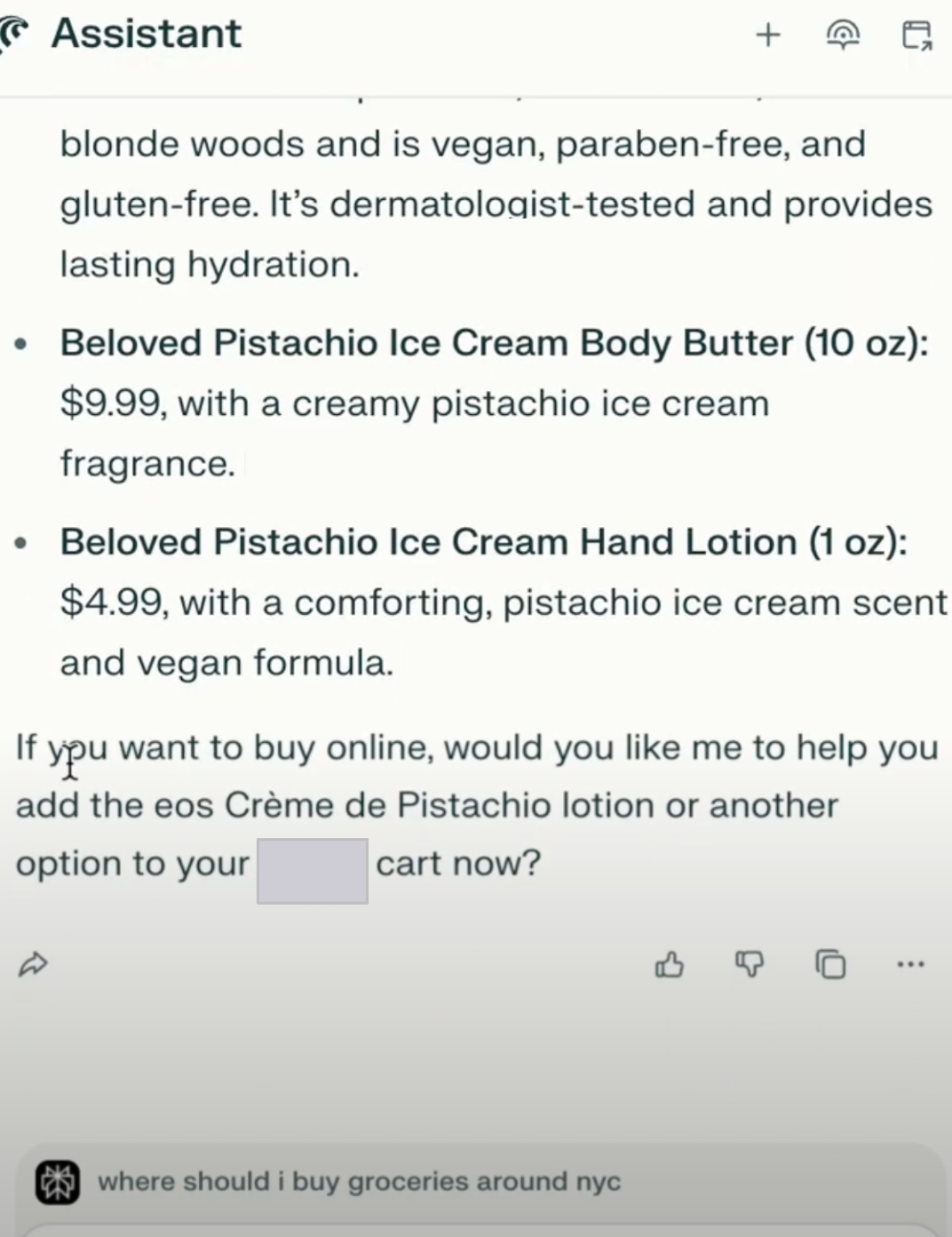 This simulation includes different types of clicks from AI bots. Before purchasing the lotion, Comet first had to decide which option was the best. For this purpose, it had pre-scraped data that was crawled by Perplexity AI bots. Perplexity compiled a list of options for the user to consider before instructing Comet’s assistant to go ahead and interact with an online retailer to complete the checkout process. Without AI bots crawling for details on various types of lotion, the LLM wouldn’t have been able to produce this answer: